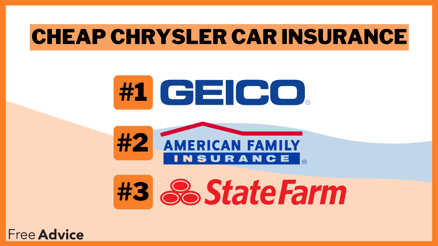 18,155 reviewsGeico, American Family, and State Farm are the best companies for cheap Chrysler car insurance. Geico offers the most affordable rate at $68 per month.